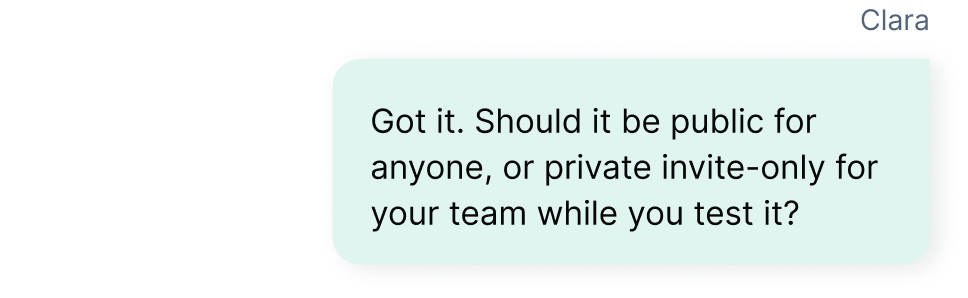 Train Clara on your data — website, documents, CRM — and launch a fully customized AI assistant in minutes.