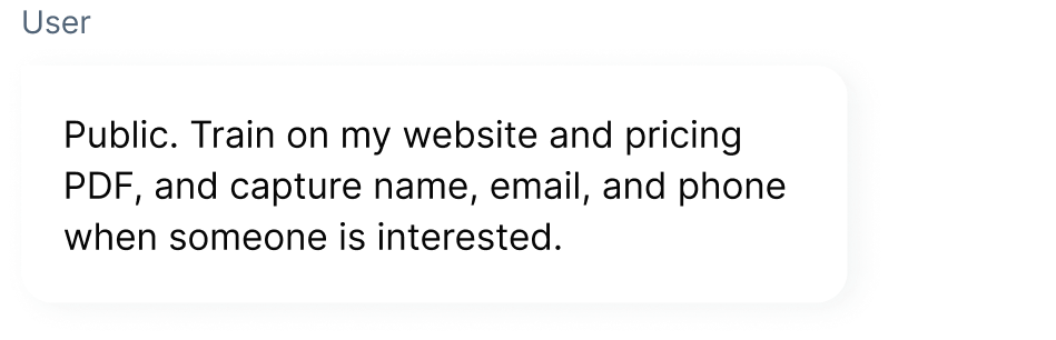 Trained on your website, documents, and CRM to deliver relevant, personalized help.