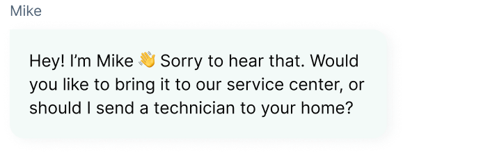 Clara can suggest the best option: bringing the item to the workshop, sending it via delivery, or scheduling a technician to visit the home. 🛠️All inquiries are routed automatically to the right specialist, but if needed, a human operator can jump into the chat seamlessly.